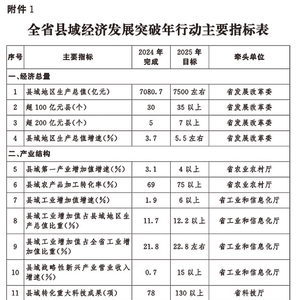(一)经济总量明显提升。县域地区生产总值力争突破7500亿元,同比增长5.5%左右。其中,超100亿元的县增至35个,超200亿元的县增至7个。