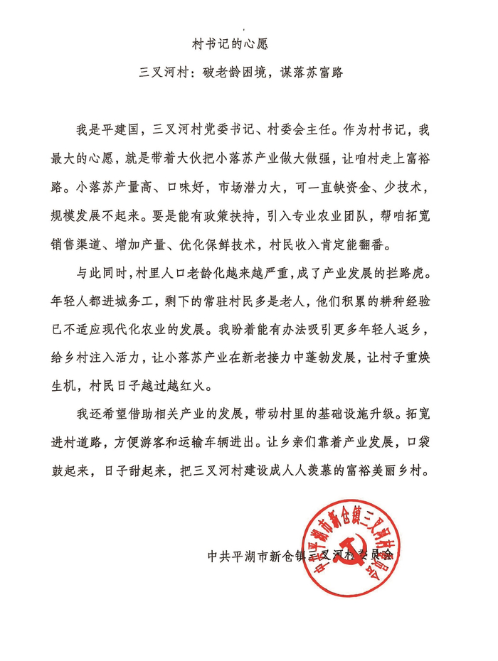 295.56万元和增长44.74%,这两个数据让三叉河村党委书记、村委会主任平建国喜忧参半。前者是三叉河村2024年集体经营性收入,代表发展实力,全镇排名虽比上一年前进了一位,但仍居倒数第二;后者是同比增长率,代表发展的活力,名列平湖市前茅。