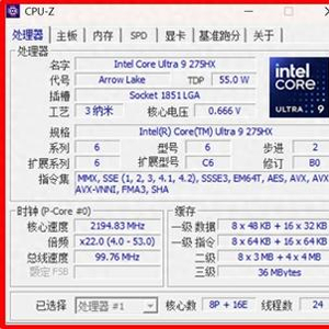 英特尔酷睿Ultra 9 275HX处理器在规格上仅比Ultra 9 285HX低0.1GHz的频率。它采用24核24线程设计,即8个性能核+16个能效核构成,睿频加速频率5.4GHz,拥有36MB三级缓存,默认TDP为55W,最高TDP可以达到160W。