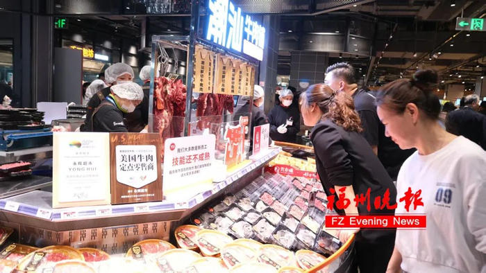 在最热闹的“流量中心”生鲜区,潮汕牛肉当天屠宰、精切现售。