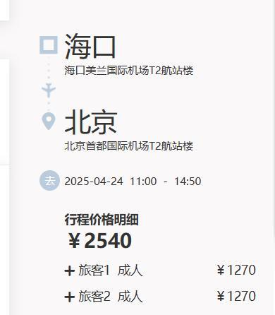 以石女士和老伴从海口飞北京的票价为例,使用“尊享卡”内的100元后,销售方给出的票价是飞北京大兴机场,两人票价优惠后是2320元。即便是优惠后的价格,单张票价也比航司官网票价高60元。