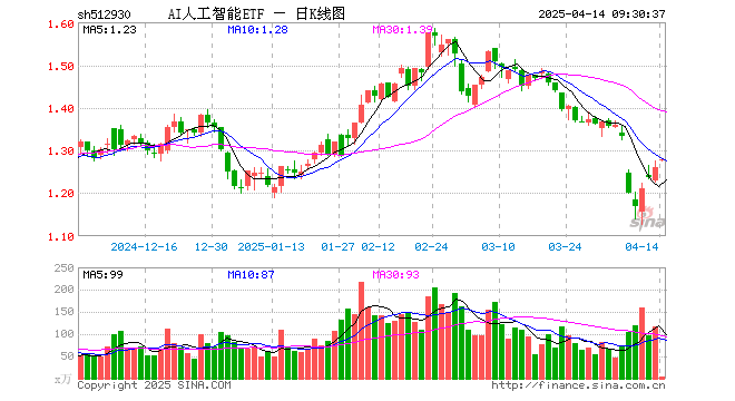 AI人工智能ETF(512930)业绩比较基准为中证人工智能主题指数收益率,管理人为平安基金管理有限公司,基金经理为刘洁倩,成立(2019-07-12)以来回报为46.27%,近一个月回报为-15.09%。