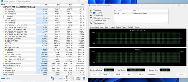 开启X3D模式后,因为只有8核心16线程,AMD锐龙9 9950X3D的平均烤机功耗只有112W左右,温度也降低到了82℃左右,大家按需调整即可。
