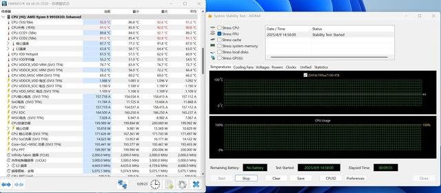 我们最后进行了烤机测试,看一看七彩虹 CVN X870 ARK FROZEN V14 主板的抗压能力,使用AIDA 64进行压力最大的FPU单拷测试。
