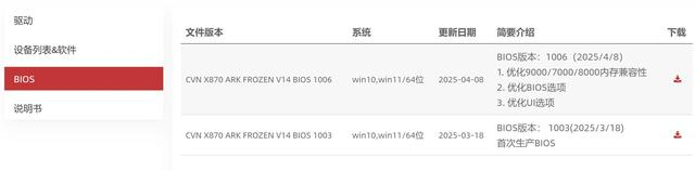下面我们来看七彩虹 CVN X870 ARK FROZEN V14 主板的BIOS,目前这款方舟主板BIOS最新版本日期在4月8日,去官网即可更新。最近几代七彩虹主板BIOS除了本身设计功能越来越丰富外,经常保持更新也是好评的点,能及时修复BUG,提供新功能,对于新老玩家都很有用。