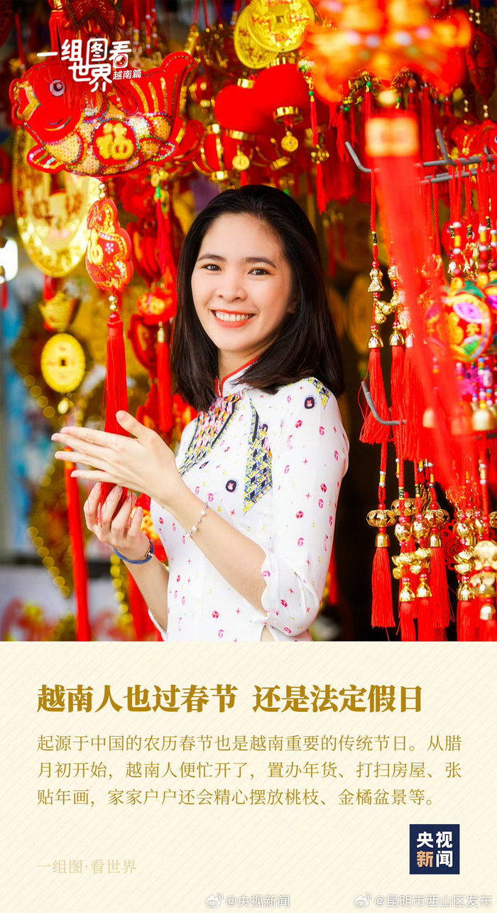 起源于中国的农历春节也是越南重要的传统节日,他们也会置办年货、张贴年画等。
