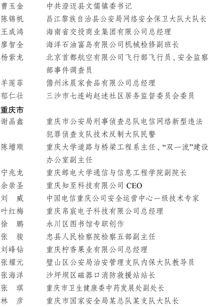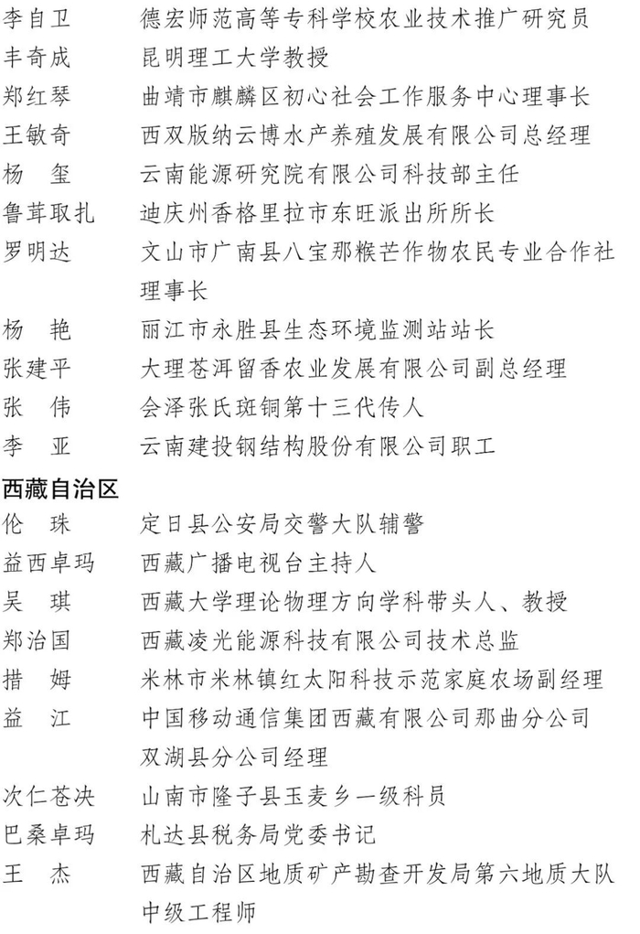 拟表彰对象名单