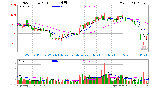 电池ETF(159755)涨1.10%,半日成交额3530.00万元