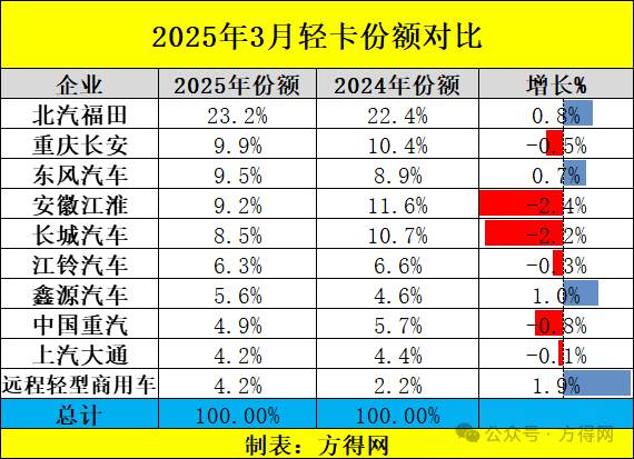 前3月轻卡超53万辆!福田份额近4成 重汽双增长 比亚迪逆袭大增677倍!丨头条