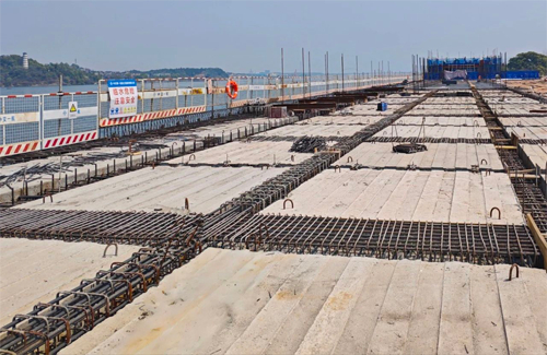 据悉,此次吊装共完成预制空心板273榀、预制梁248榀、预制面板371块。目前,该项目码头现浇面层与附属施工、道路堆场面层铺筑、房建室内装修及水电安装等分项工程正同步高效推进,项目团队全力以赴朝着5月底的交付目标发起总攻。