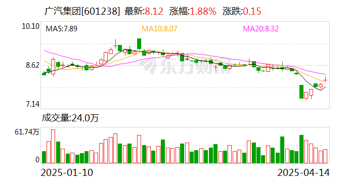 Wind数据显示,截至4月14日收盘,广汽集团A股股价为8.12元/股,A股总市值662亿元,市盈率(TTM)高达98.68。