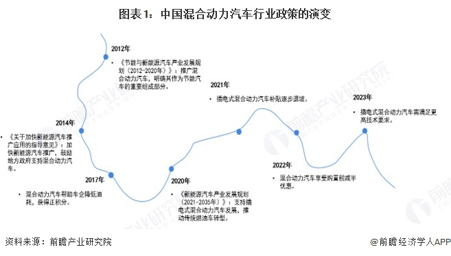 中国混合动力汽车行业从早期的宏观规划到具体的技术要求和补贴政策,政策逐步细化。作为节能汽车和新能源汽车的过渡技术,混合动力汽车在政策中始终占据重要地位。随着产业发展,政策逐步从补贴驱动转向技术驱动,对混合动力汽车的技术要求不断提高。