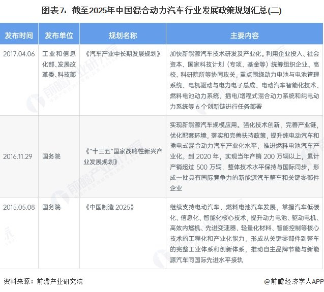 2015年以来,国家层面混合动力汽车行业相关规划汇总如下: