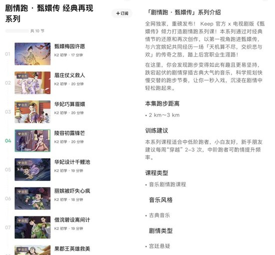 Keep也曾在试图加入一些娱乐元素,将拳皇97元素融入拳击体验课,把《甄嬛传》剧情融入燃脂跑,但这些微不足道的精神调剂,也消除不了5km的跑道和40分钟的hiit带来的肉体折磨。