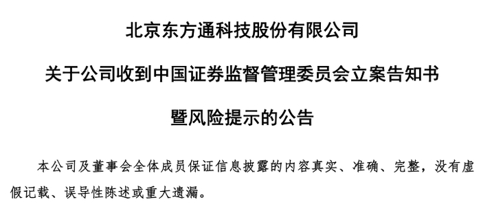 东方通爆雷!因涉嫌财务数据虚假记载被证监会立案 或触发退市风险