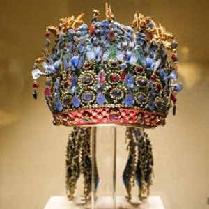 资料图:中国国家博物馆展出的的明孝端皇后凤冠,以此为原型的文创产品受到观众热捧。中新社记者 赵文宇 摄