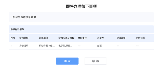 2.阅读填报须知内容后根据实际办理需求选择对应的选项,点击“确认”,进入事项、材料确认页面。