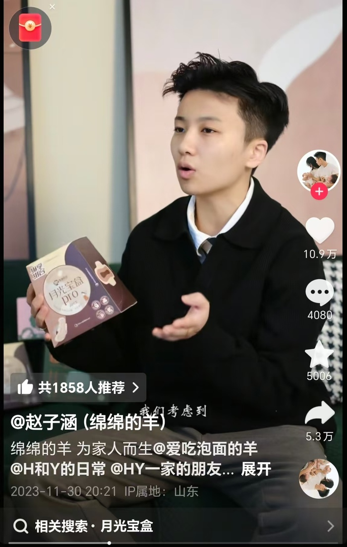 目前,赵子涵在抖音的粉丝量超过126万,绵绵的样女性护理旗舰店粉丝量为超过257万。后者的粉丝远超苏菲抖音官方旗舰店202万粉丝量、护舒宝119万粉丝量。