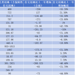 另外,东莞、烟台和厦门住宅用地下降超过了4成,分别下降了42.7%、46.4%和44.8%。成都、宁波、杭州、南宁则下降超过3成,分别下降了35.2%、35.5%、35%和33.6%。重庆、合肥、西安、无锡也下降了超过2成,分别下降25.6%、21.1%、21.5%和21.7%。