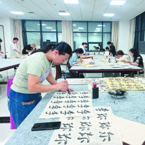学员在职工夜校上书法课。(资料图)