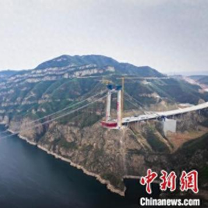 在济源至新安高速公路施工现场,世界最大跨径独塔单跨悬索桥——济新黄河大桥正进行钢桁梁架设。其首创的“单塔地锚式回转缆”设计(主跨555米),主缆如“U”形绕塔回转,最大限度保护了小浪底库区地质遗迹。
