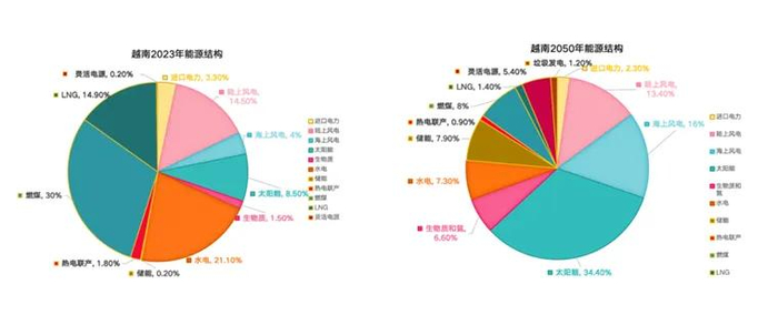 根据越南第八版电力规划(PDP8),围绕大力发展新能源,越南计划投入1300亿美元用于电网升级与新能源基建,以期到2030年可再生能源占比提升至15-20%,2050年达67.5-71.5%。