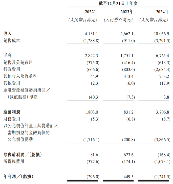 净利润方面,2022年、2023年和2024年分别实现净利润-2.96亿元、4.50亿元和-12.42亿元。从财务报表可以看到,公司2024年以公允价值计量且其变动计入当期损益的金融负债的公允价值变动高达38.67亿元,主要是A轮优先股的价值变动,直接导致公司从盈利变成亏损。公司还称,2024年行政费用增加,主要是根据股权激励计划向李奇斌授出的若干股份确认股份支付开支。