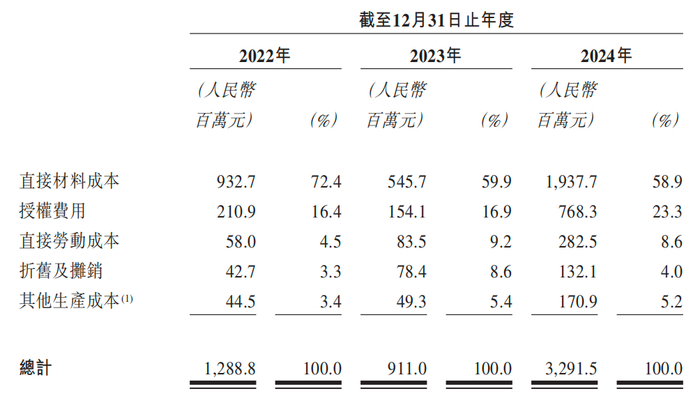 值得注意的是,卡游的毛利率非常高,近年来均保持70%的水平。2022年、2023年及2024年,毛利率分别为68.8%、65.8%及67.3%,举例来看,公司2024年100.57亿元的收入中毛利达到67.65亿元,成本方面,2024年的直接材料(包括纸张、油墨及其他原材料)成本为19.38亿元,IP授权成本为7.68亿元,都比较低。