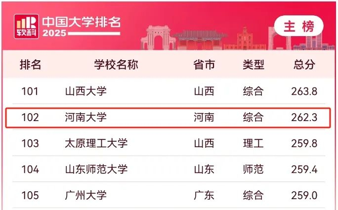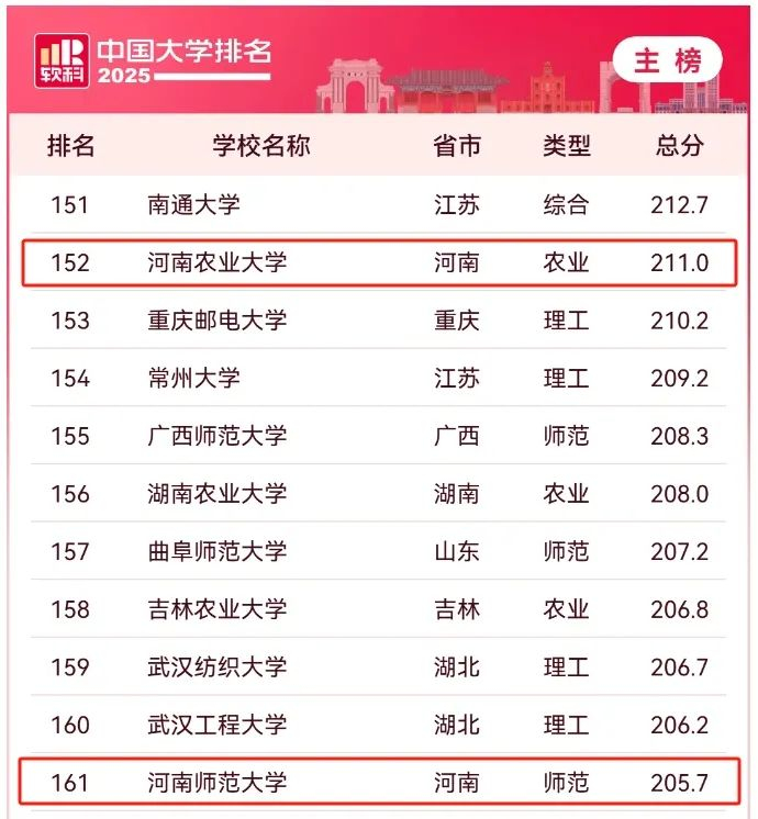 河南6所高校进入前200强!2025软科中国大学排名最新发布