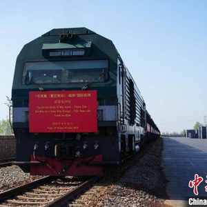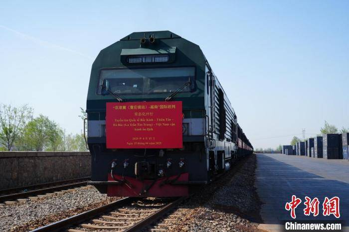 中新网邯郸4月15日(王天译)15日9时许,一列满载紧固件等货物的班列从位于河北省邯郸市鸡泽县的曹庄镇货运站鸣笛启程,驶向越南河内,全程运行时间仅需7天左右。