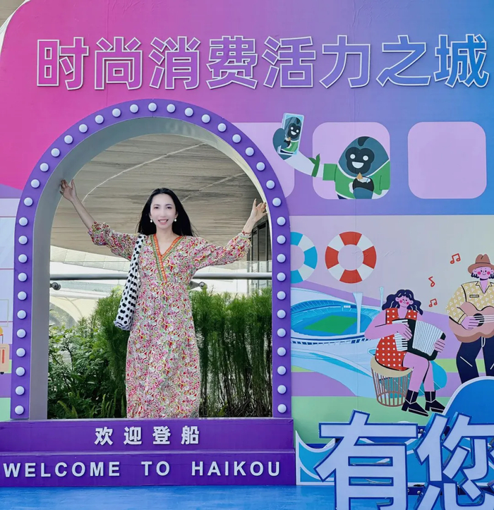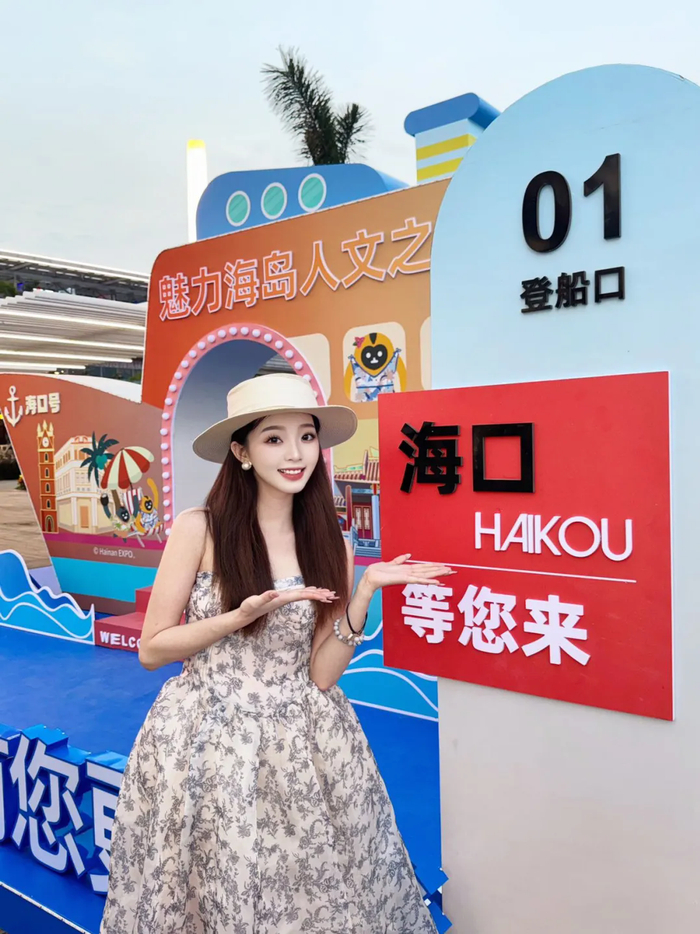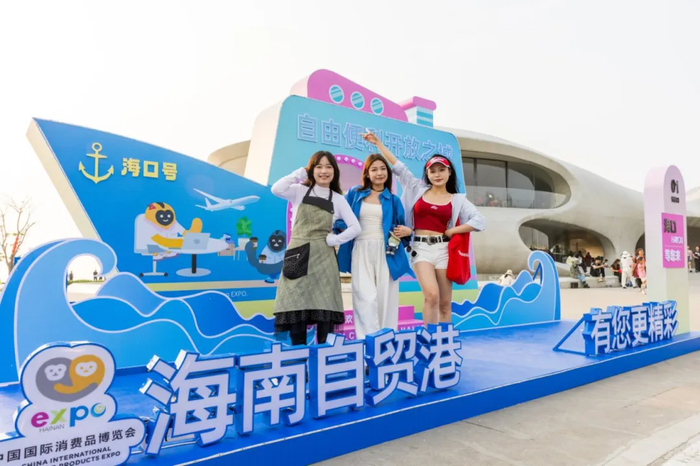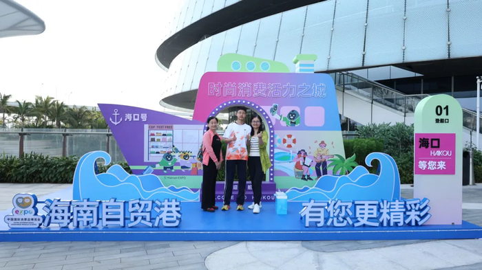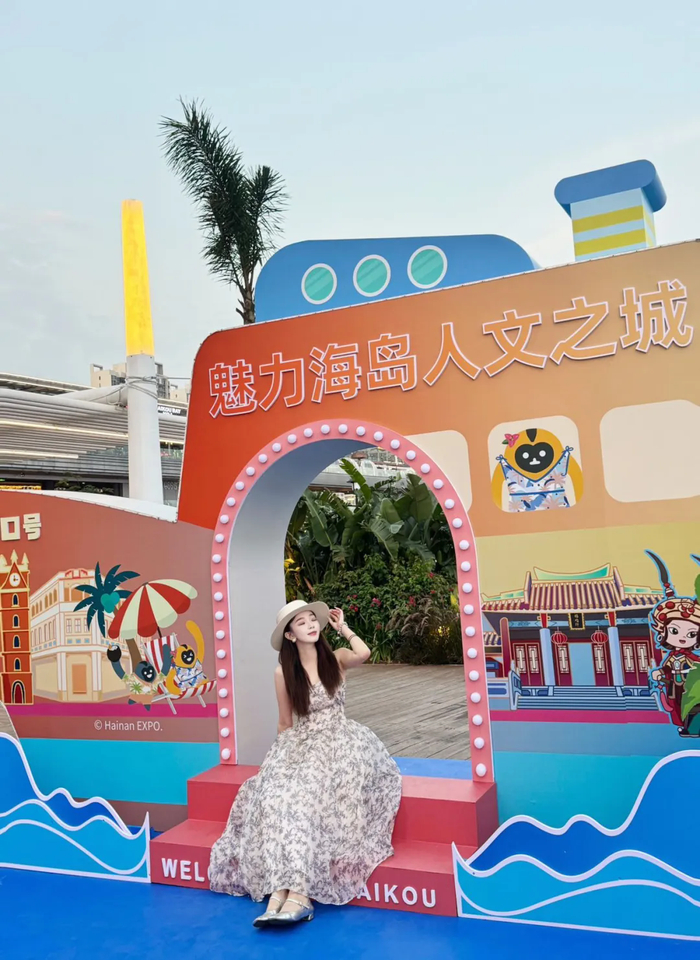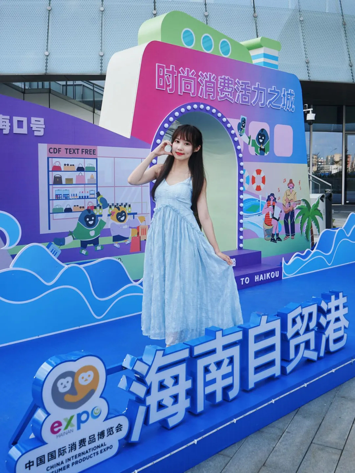 我觉得今年消博会海口的这个打卡点的设计非常好,我本人非常喜欢,因为它就是一艘巨轮的设计,也象征着我们海南自贸港的建设也像这艘巨轮一样,扬帆远航。