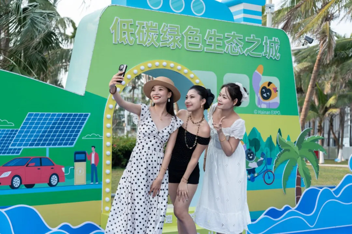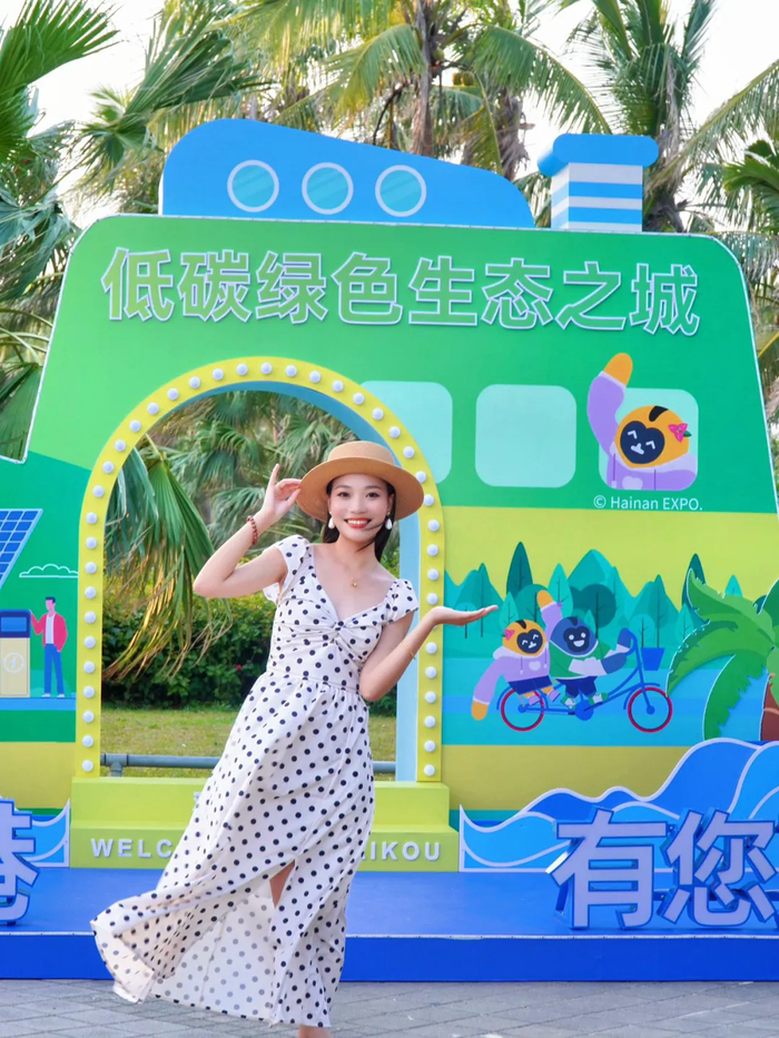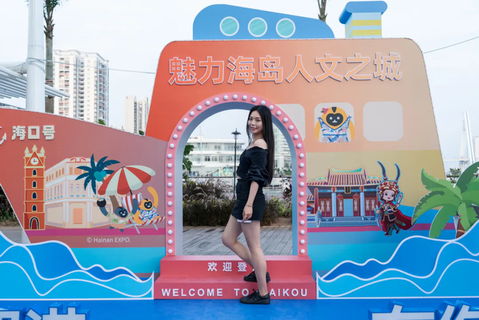 很多游客过来海口,如果说他想要去海边,第一时间可能想到的就是假日海滩,所以在这里能看到这个打卡点,就能感受到我们消博会的氛围。
