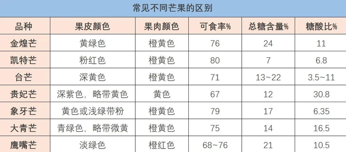 我国芒果品种众多,比如金煌芒、大青芒、鹰嘴芒、台芒、凯特芒、贵妃芒、象牙芒等。