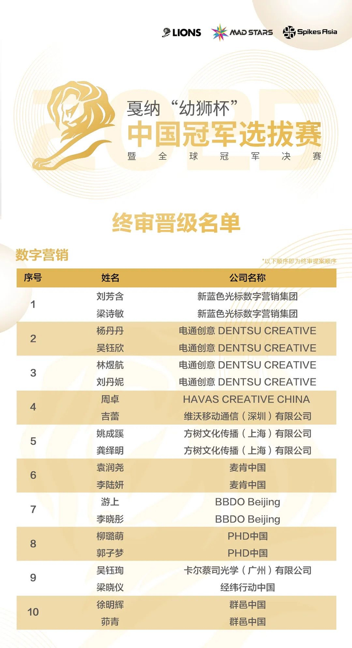 冲击冠军!2025戛纳“幼狮杯”中国冠军选拔赛晋级名单公布