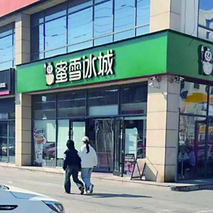 蜜雪冰城原本红色的招牌改为了绿色招牌