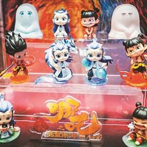 位于上海南京路步行街的泡泡玛特全球旗舰店内展示的《哪吒之魔童闹海》天生羁绊系列手办盲盒,吸引了不少消费者。王初摄(人民视觉)