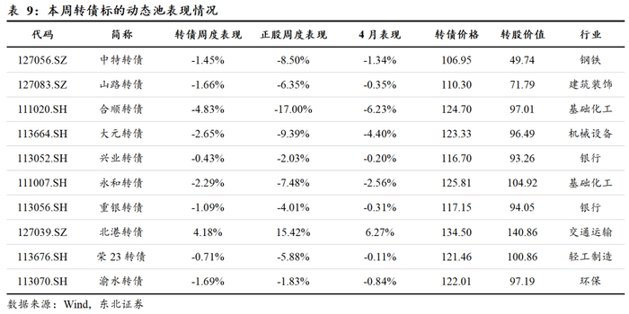 本周转债标的动态池表现情况