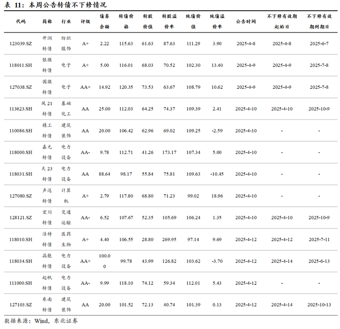 本周无转债进入转股与赎回期。