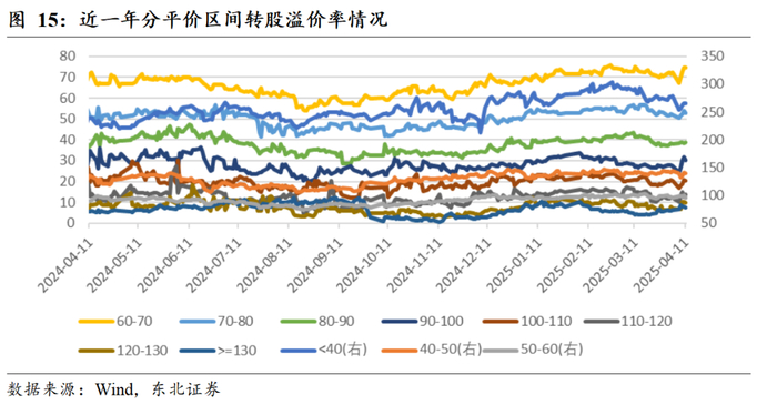 分平价区间占比方面,平价在50-60、70-80、80-90的转债占比变动不显著,平价在40以下、50-60、70-80、80-90的转债占比提高,平价在100-110、110-120、120-130、130以上的转债占比减少。