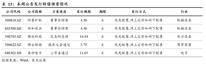 本周公告转债发行预案进度