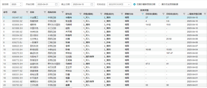 伴随A股上市公司年报陆续披露,券商分析师们纷纷调整个股评级。Wind数据显示,4月以来,已有20只个股获券商上调评级,主要覆盖科技、消费两大核心领域,业绩增长、公司及行业发展前景广阔是券商调增评级的主要原因。
