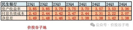 从图1中我们可以看到,资产收益率整体下降了25bps,从3.80%降到3.55%。这是什么水平呢?2024年股份行龙头招商银行的总资产收益率是3.5%。也就是说民生银行的资产收益率已经接近招行的水平。