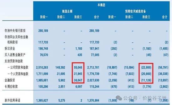 从图2我们看到,公司贷款+个人贷款第三阶段的资产总额=550.46+319.45=869.91亿,比2023年的860.2亿上升了9.71亿,而不良贷款认定只有656.1亿,存在213.81亿的认定缺口,2023年认定缺口是209.23亿。由此可见,民生银行对于不良的认定标准和2023年相差不大,依然很松。国有大行和招行的不良认定都是严丝合缝按照阶段三资产认定的。