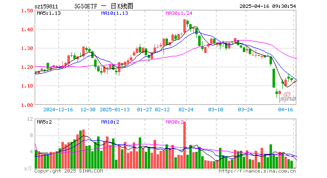 5G50ETF(159811)开盘跌0.97%,重仓股立讯精密跌2.43%,中兴通讯跌0.16%