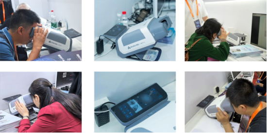展会期间,配备Airdoc-AIFUNDUS 2.0与万语医疗大模型的便携式眼底相机「鹰瞳AI-FD16H」成为展区亮点。AI-FD16H具备2.8毫米小瞳孔拍摄、4800万像素高清分辨率、92度视场角等特点,并自带显示屏幕,支持实时影像查看与参数调整,可轻松获取清晰、细节丰富的眼底图像。