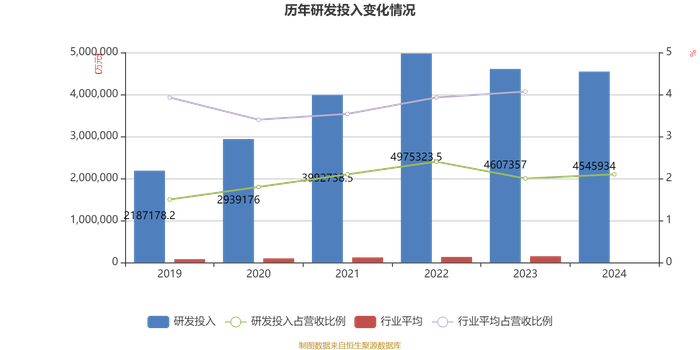 2024年全年,公司研发投入金额为454.59亿元,同比下降1.33%;研发投入占营业收入比例为2.1%,相比上年同期上升0.1个百分点。此外,公司全年研发投入资本化率为0%。