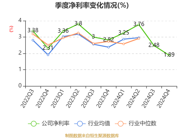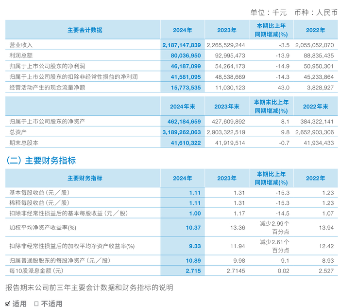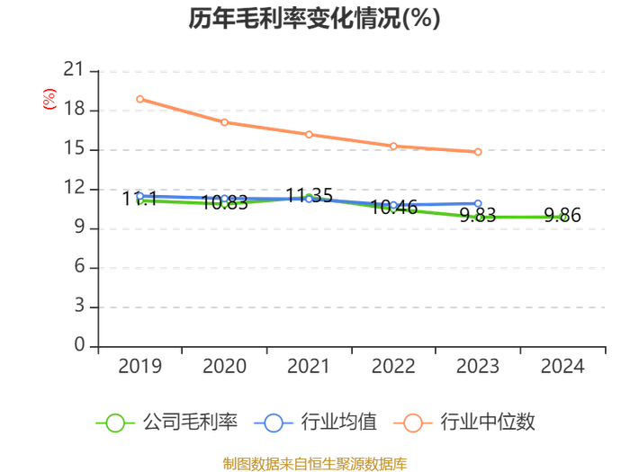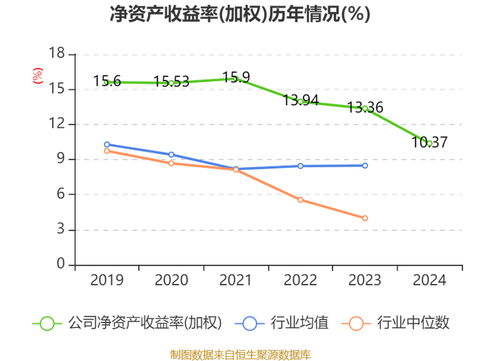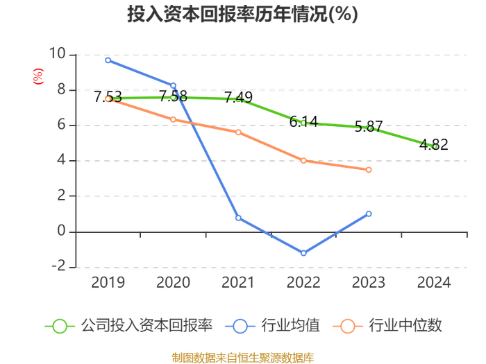 数据显示,2024年公司加权平均净资产收益率为10.37%,较上年同期下降2.99个百分点。公司2024年投入资本回报率为4.82%,较上年同期下降1.05个百分点。