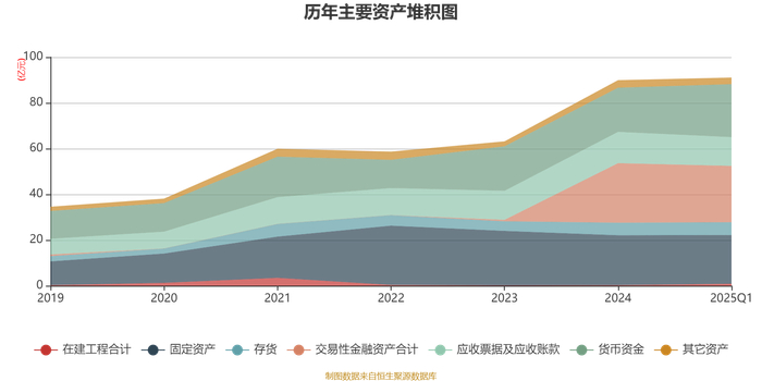 资产重大变化方面,截至2025年一季度末,公司货币资金较上年末增加20.06%,占公司总资产比重上升3.99个百分点;交易性金融资产合计较上年末减少5.45%,占公司总资产比重下降1.92个百分点;应收票据及应收账款较上年末减少8.37%,占公司总资产比重下降1.45个百分点;固定资产较上年末减少2.34%,占公司总资产比重下降0.87个百分点。
