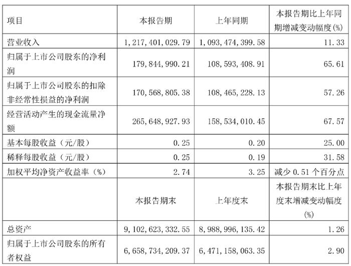 中证智能财讯世运电路(603920)4月16日披露2025年第一季度报告。公司实现营业总收入12.17亿元,同比增长11.33%;归母净利润1.8亿元,同比增长65.61%;扣非净利润1.71亿元,同比增长57.26%;经营活动产生的现金流量净额为2.66亿元,同比增长67.57%;报告期内,世运电路基本每股收益为0.25元,加权平均净资产收益率为2.74%。