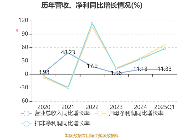 负债重大变化方面,截至2025年一季度末,公司应付票据及应付账款较上年末减少7.2%,占公司总资产比重下降1.39个百分点;短期借款较上年末增加11.56%,占公司总资产比重上升0.49个百分点;应付职工薪酬较上年末减少6.84%,占公司总资产比重下降0.11个百分点;递延所得税负债较上年末减少4.78%,占公司总资产比重下降0.05个百分点。